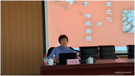 刁统菊教授在讲座中围绕着“从节气到节日”“冬至的文学”“做冬至和过冬至”“冬至与传统美德”四个方面进行了精彩的讲解。首先,她将冬至从节气到节日的发展流变娓娓道来;其次,分别从口头文学与作家文学两个方面为大家呈现了文学作品中的大江南北、古往今来的冬至文学作品;再次,分析了在传统社会中冬至节俗所独有的“祭天”“祭祖”“祭神”的深层文化意蕴,又生动地为大家展示了“送送至盘”“数九送羊肉”“敬老迎新”“尊师拜孔”“吃冬至团圆饭”等具体而微的冬至习俗;最后,刁统菊教授分享了自己学习领会习近平总书记关于中华优秀传统文化有关论述的心得体会,并从“热爱生命”“尊师重教”“热爱祖国”三个方面阐述了冬至文化中蕴含的中华美德,并呼吁大家践行中国传统美德,将社会主义核心价值观内化于心、外化于行。